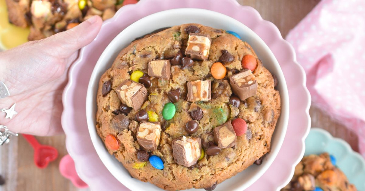 La receta es una variante creativa de galletas grandes que incorpora diversos toppings y chocolates.