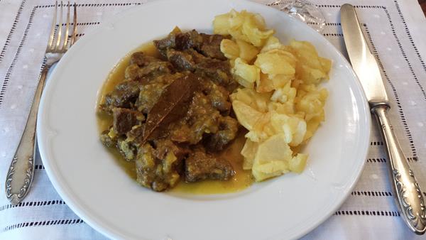 Esta receta describe cómo preparar un guiso de ternera jugosa y sabrosa utilizando carne magra, verduras y vino fino.