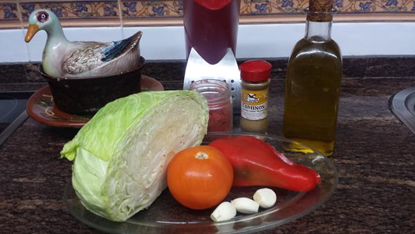 Receta de col con pimientos y tomate, preparada por Beatriz Molina y adaptada para una versión más ligera.